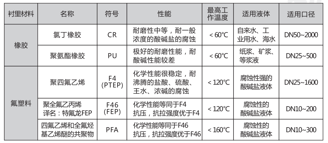 3、电磁流量计衬里材料的选择