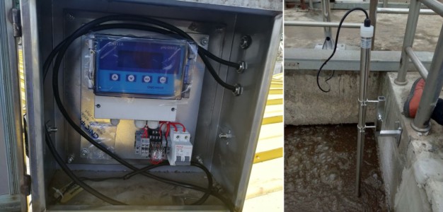 在污水进、出口均设有pH分析仪,进水处配置pH计的目的是方便工艺人员针对进水水质采取相💧应的控制调节手段,以满足后续处理的要求。在出水处设置pH计的目的是反映处理的效果,方便厂部和政府部门对污水厂运行状态监管。pH计的基本工作原理是用电位法测量溶液的酸碱度,插人待测溶🌸液的测量电极与具有恒定电位的参比电极之间的电势差与溶液pH值之间有固定的函数关系,由此通过测量电势得出pH值。